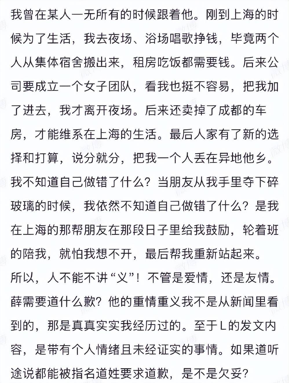 与此同时,段曦公开支持薛之谦,称其重情重义。