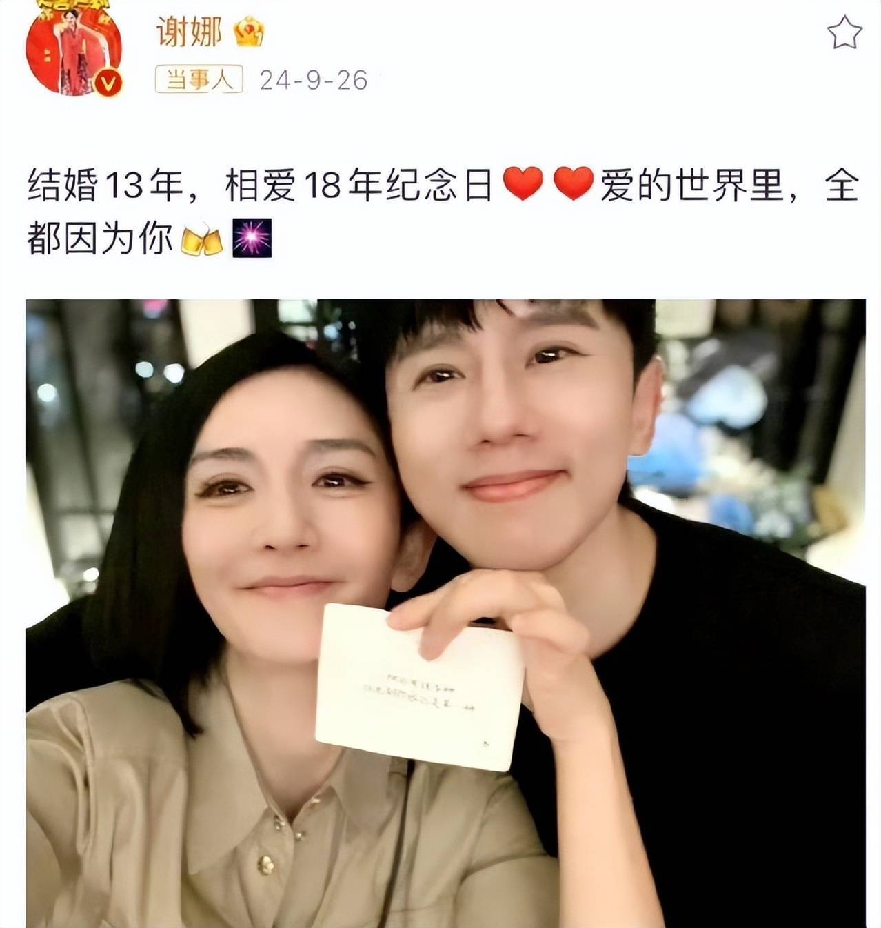 比月谢娜发“相爱十八年”纪念照,由此推算两人正式恋爱时间应年。