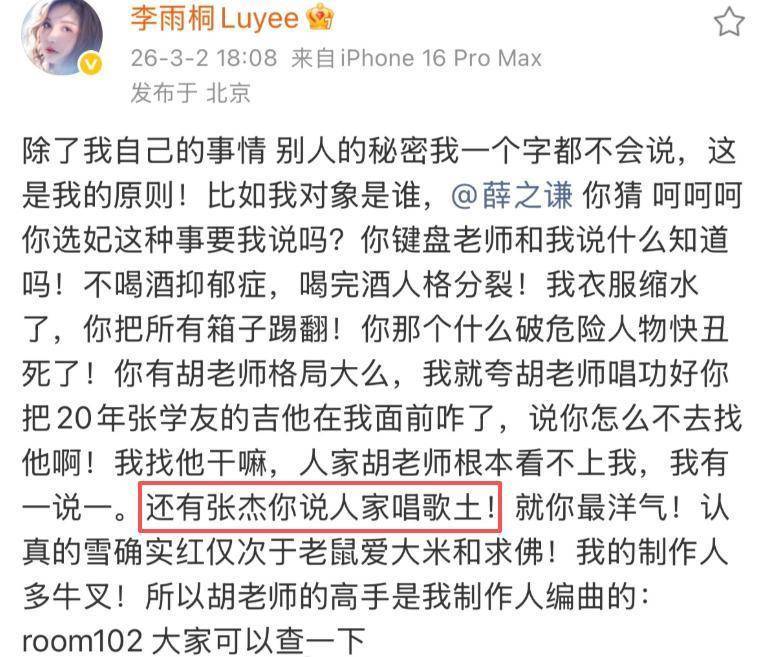 真正掀起舆论巨浪的,是李雨桐爆料中提及的与薛之谦早有嫌隙的张杰。