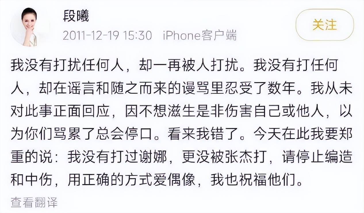 当年谢娜和张杰公开恋情后,段曦长期遭受网暴。