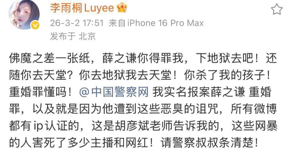 素有“雷神之锤”之称的李雨桐再度公开声讨薛之谦,爆料诸多不为人知之事。